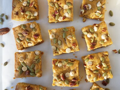 Pumpkin Pecan Bars with White Chocolate and Ginger